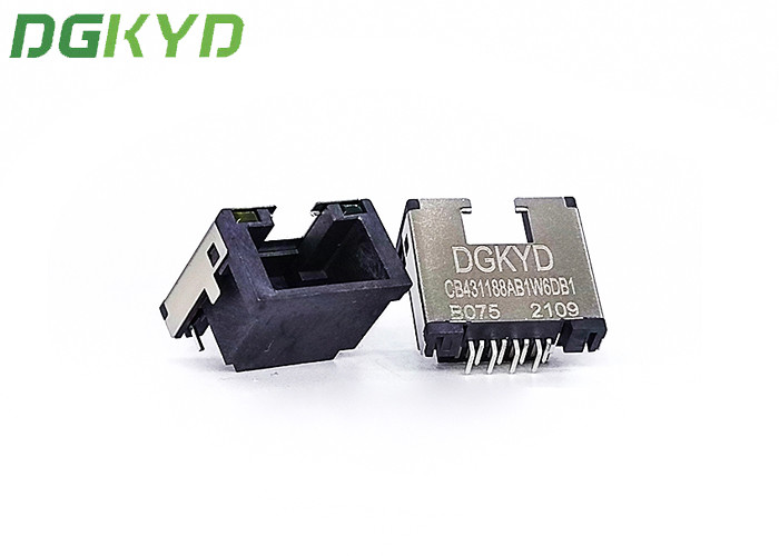 Đầu cắm RJ45 SMT kiểu dáng thấp có vỏ kim loại, đầu cắm RJ45 SMT gắn bảng mạch 4.2 DIP có vỏ và đèn DGKYDCB421188AB1W6DB1075