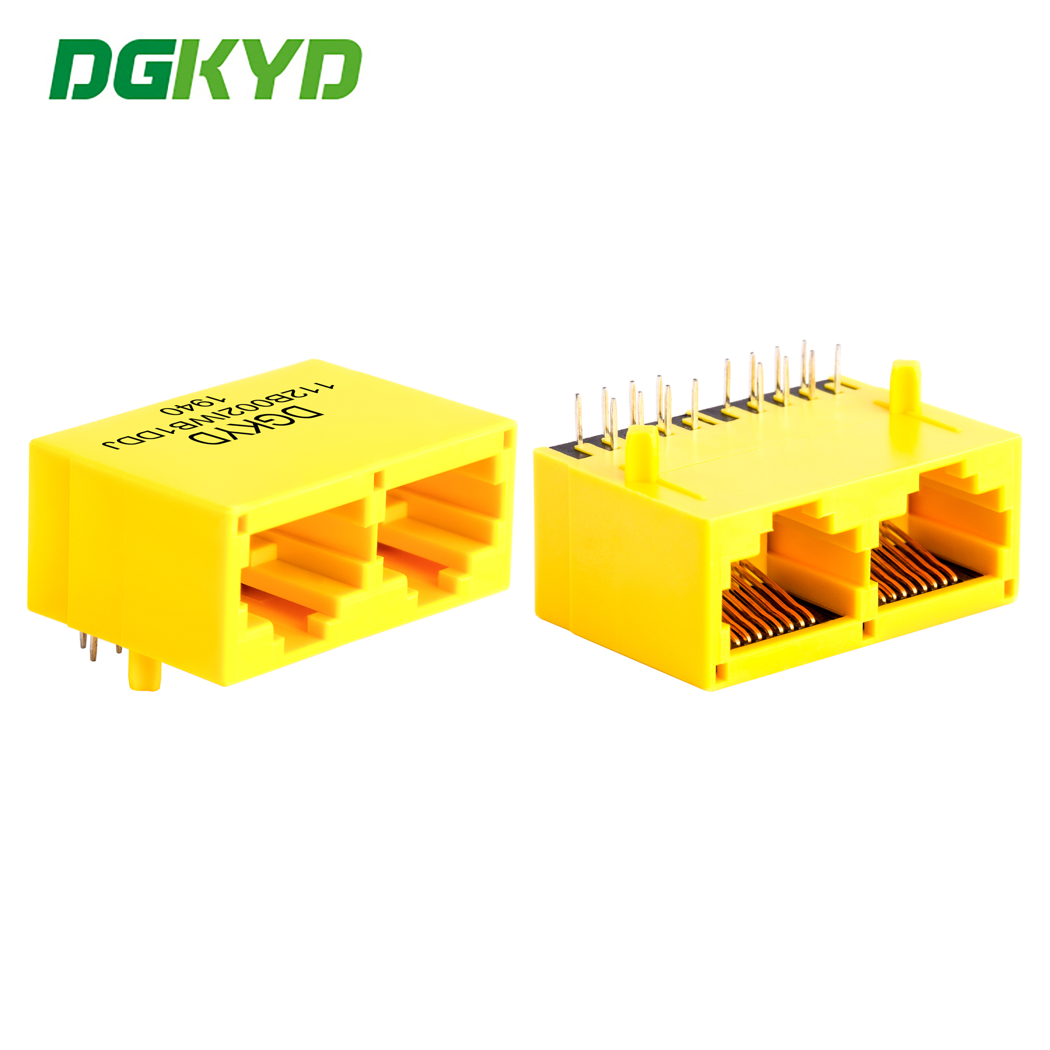 Drawing: Cat 5 RJ45 dual port jack 8 pin modular connector yellow plastic housing DGKYD112B002IWB1DDJ
